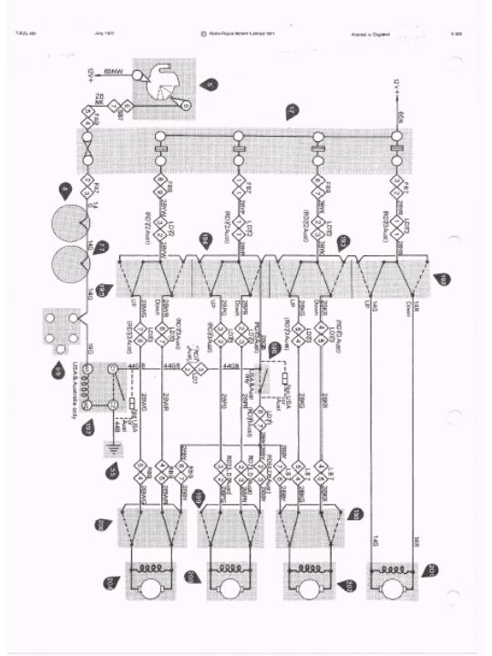 NOTE: On some cars (Silver Shadows for example), the wires to the window motors are yellow and yellow/black. On others they are blue and white. This does not change the configuration in any way.